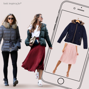 A jaqueta puffer pode ser usada com peças delicadas como a saia plissada, vestido tubinho ou o midi, deixando o visual mais feminino e com um toque de fashionismo.